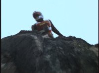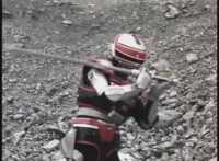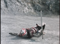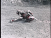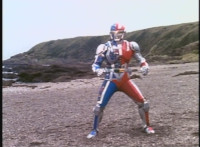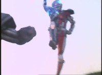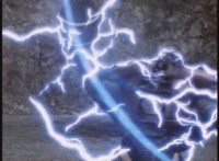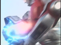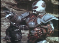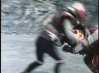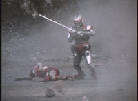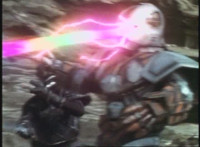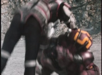 VR Ryan lies on the sand as Zelton approaches, when VR Ryan turns his head, startles Zelton, then leaps up, charges up his hand, and energy slashes his way past him, cutting off his right hand. |