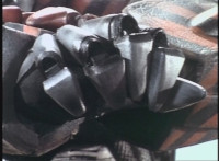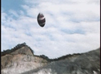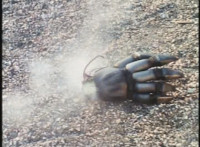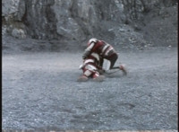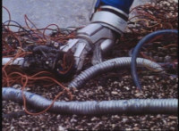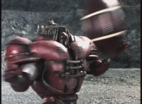 Recycled; Transitions in; cuts follow-ups of Footbot tossing his head dirt-burstingly at VR JB. |