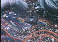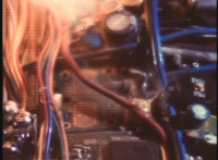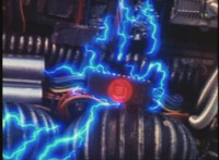Circuitry glows and crackles. |