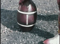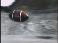 Footbot detaches his football head, then passes it forth, it flies across the quarry. |