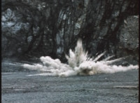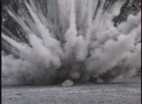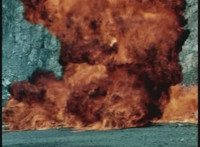 A massive explosions erupts on the beach. |