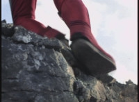 VR Kaitlin loses her footing on the cliff. |