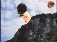 VR JB flips over away from one explosion just for another to erupt near where he lands. |