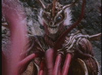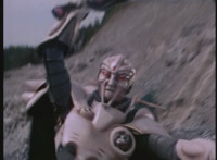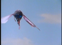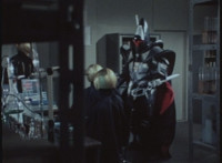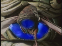Colonel Icebot spreads his arms, zoom in on his chest eye as three bugs fly out from it, attaching to VR JB, then two more, which attach to VR Kaitlin, the pair struggling with the bugs. |