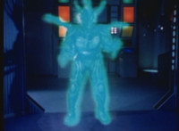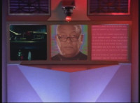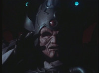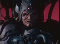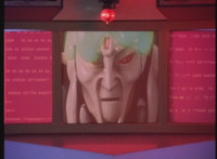 Grimlord's energy screen above the mutants in the Dungeon, shows an image of Colonel Icebot as he talks close with a fist raised that he slowly begins to lower. |