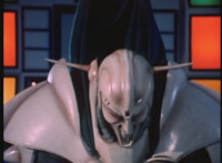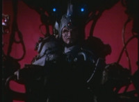 Medium shot of Grimlord talking a lot, then raising his right hand, before zoom in. |