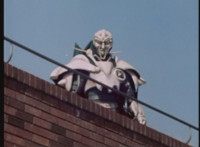 Zoom in on Colonel Icebot standing on the edge of a roof. |