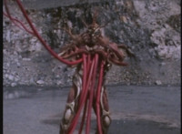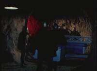 Close on General Ivar talking and gesturing in a cave, as Skugs continue to haul boxes and girders deeper into the cavern. |