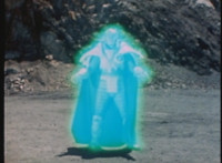 Grimlord's energy summons an energy screen above the mutants in the Dungeon, forming an image of Colonel Icebot as he talks close with a fist raised that he slowly begins to lower. |