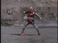 VR JB motions his arms about while his body trails, until he erupts into sparkle particles that reassemble as a giant energy image of him using the VR Techno Bazooka, firing both cannons forth. |