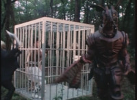 Skugs & Terminoid begin to terrorize a couple trapped in a cage. |