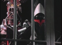 With Terminoid flapping behind him, General Ivar talks to the caged couple. |