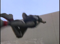 VR Kaitlin leaps out of the cockpit, through the tunnel, then drops out of the Skypase port. |