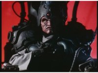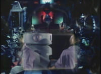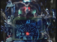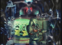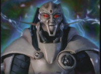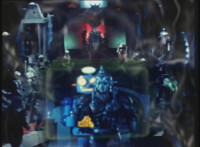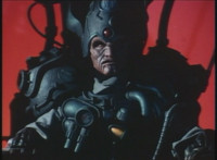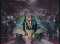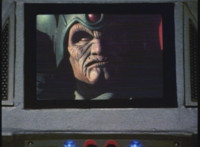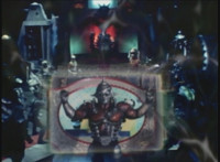 Grimlord's energy screen above the mutants in the Dungeon, shows an image of Colonel Icebot as he talks close with a fist raised that he slowly begins to lower. |