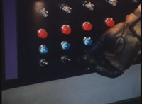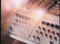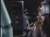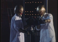 Zoom in (past a proto-Vixen, shh!) onto labcoated Skugs bringing a laser device into the room. Zoom in on the white robot as it blinks. |