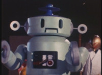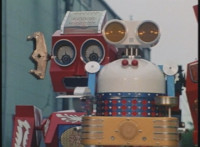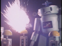 Energy slashed, Electrobot crackles and writhes, as VR JB turns around and poses with his Laser Lance as Electrobot collapses and explodes massively behind him. |