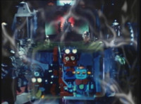 Grimlord's energy screen shows images of Electrobot releasing crackling of energy, which causes the warrior robots to roll to life, including Samson. |