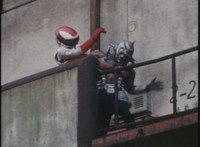Superimposed explosion added, stripped out of footage from a different Spielban episode. |