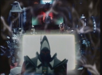 Grimlord's energy screen briefly shows an image of a Rollbot standing up between two trees. |