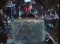 Grimlord's energy screen briefly shows an image of a sharp zoom in on General Ivar standing atop a cliff. |