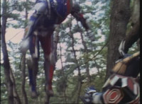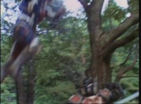 Slice slices at VR Ryan, who leaps out of the way into a tree. He quickly jumps back down. |