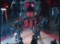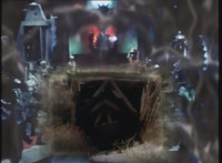 Zoom in past shoulder of Zelton onto Grimlord talking on his throne. |