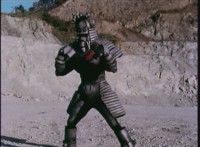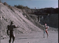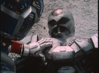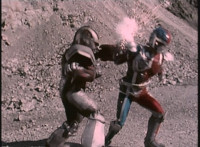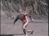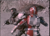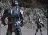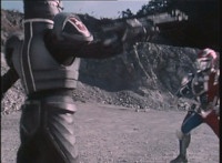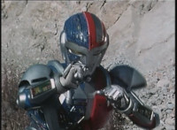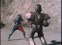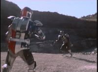 Zelton morphs into Graybot, who fires his arrows forth, VR Ryan diving out of the way of them. He lands in the middle of the quarry, where Graybot prepares to fire more arrows at him, as Decimator stands on a nearby cliff, observing the battle. VR Ryan throws a kick at Graybot, who dodges, then fires his arrows, hitting VR Ryan in the chest with one, but missing with the second. VR Ryan pulls the arrow out, then charges up his right hand with electricity, then leaps forth, trying to energy chop Graybot, who rolls out of the way. VR Ryan's charged hand wears off, as he poses defensively. Graybot reverts to Zelton, who then morphs into Metalbot. He rushes forth and throws a punch at VR Ryan, right at the same time he throws one, both hitting each other's fist sparkily at the same time. VR Ryan jolts back, as Zelton rushes in and sparkily punches him down. |