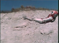 VR Ryan gets up and staggers over to Zelton, where he kneels down and tries to wake him up. Zelton, lying on his back smoking, comes to, lifting his head and talking to VR Ryan, who responds. |