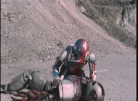 Cuts final shot before laserbeams fire in at him sparkily, revealed to be coming from Polarbot, who changes back to Zelton before firing down on him some more. |