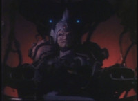 Grimlord materializes onto his throne, then talks as he slowly looks from side to side, the shot just beginning to slightly zoom in. |