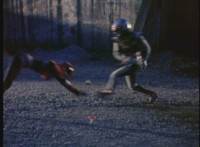 Trims start; cuts follow-ups of her leaping over him. |