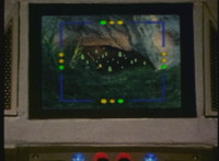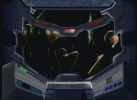 Grimlord's energy screen above the mutants in the Dungeon, shows an image of Colonel Icebot as he talks at us near a console, angrily jerking arm briefly. |