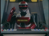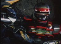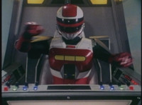 His saber locked against Sharkfin's fin blade, VR JB punches Sharkfin in the gut, them swings his saber around and knocks him into a roll, as VR Kaitlin races onto the scene, Skugs dancing all around. |