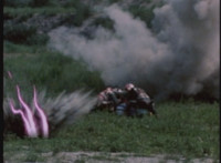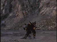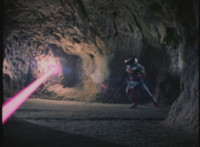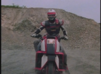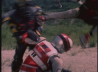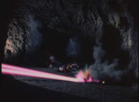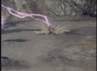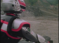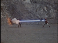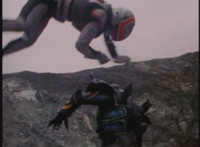 Recycled but runs fully; pink energy blasts added to shot 1; cuts follow-ups of more explosions in quarry, including Sharkfin leaping past VR JB briefly. |