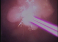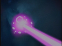 Pink laserbeams added to each shot, covering up real gun barrel in shots 1 & 3. |