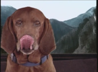 Jeb is unimpressed by Kaitlin's car as it flies into the sky above the mountains. |