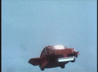 Kaitlin's car converts into flying mode and narrowly avoids crashing into the ground. |