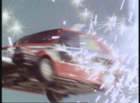 Kaitlin's car gets one of its wings sparkily blasted off. |