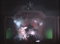 Grimlord's Virtual Dungeon explodes tremendously, caving in and falling apart before our eyes. |