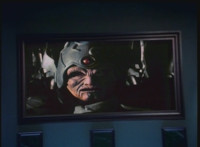 The lab viewscreen shows a close-up on Grimlord talking some on his cave throne. |
