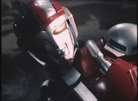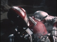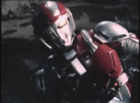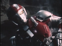 Cuts final shot before liftoff halts suddenly; cuts follow-ups of Grimlord on his throne flying at VR Ryan, the pair having one final battle, one on one, with Grimlord ending up decapitated. |