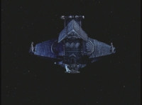 The Dark Fortress floats through space. |