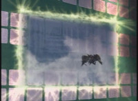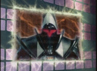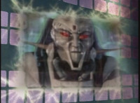 Karl Ziktor morphs into Grimlord, teleporting up to his Dark Fortress above, which floats through the virtual dimension. |