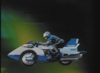 The VR Nitrocycle flies down from the VR Shoulder Cannon Shuttle. |