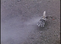 Close on VR JB flailing about amid dirt bursts. |