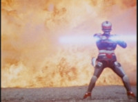 Energy slashed, Irradiator crackles, VR JB turning around and posing as he collapses and explodes massively. |