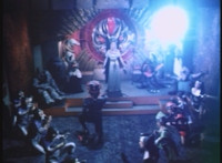 Doommaster reacts, then gestures, causing Silkoid to ditch his veil, and two Ultra-Skugs to ditch their fashionable Klanswear. VR Ryan steps down on the spotlit stairway as shot begins to zoom out. |