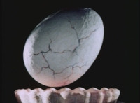 The glowing orb morphs into a giant cracked egg floating over the bone pool. |