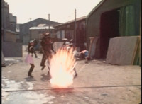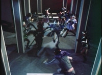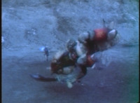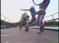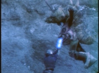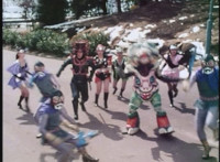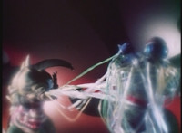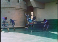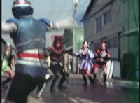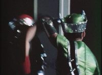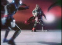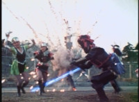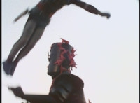 Shot 1 is split from before; cuts a bunch of follow-ups of VR Ryan using saber whip on Silkoid, then appearing in another dimension where Silkoid uses his flaming staff on him, |