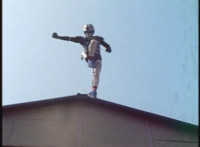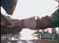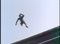Cuts follow-up of him whipping out Laser Pistol due to onscreen Japanese text. |